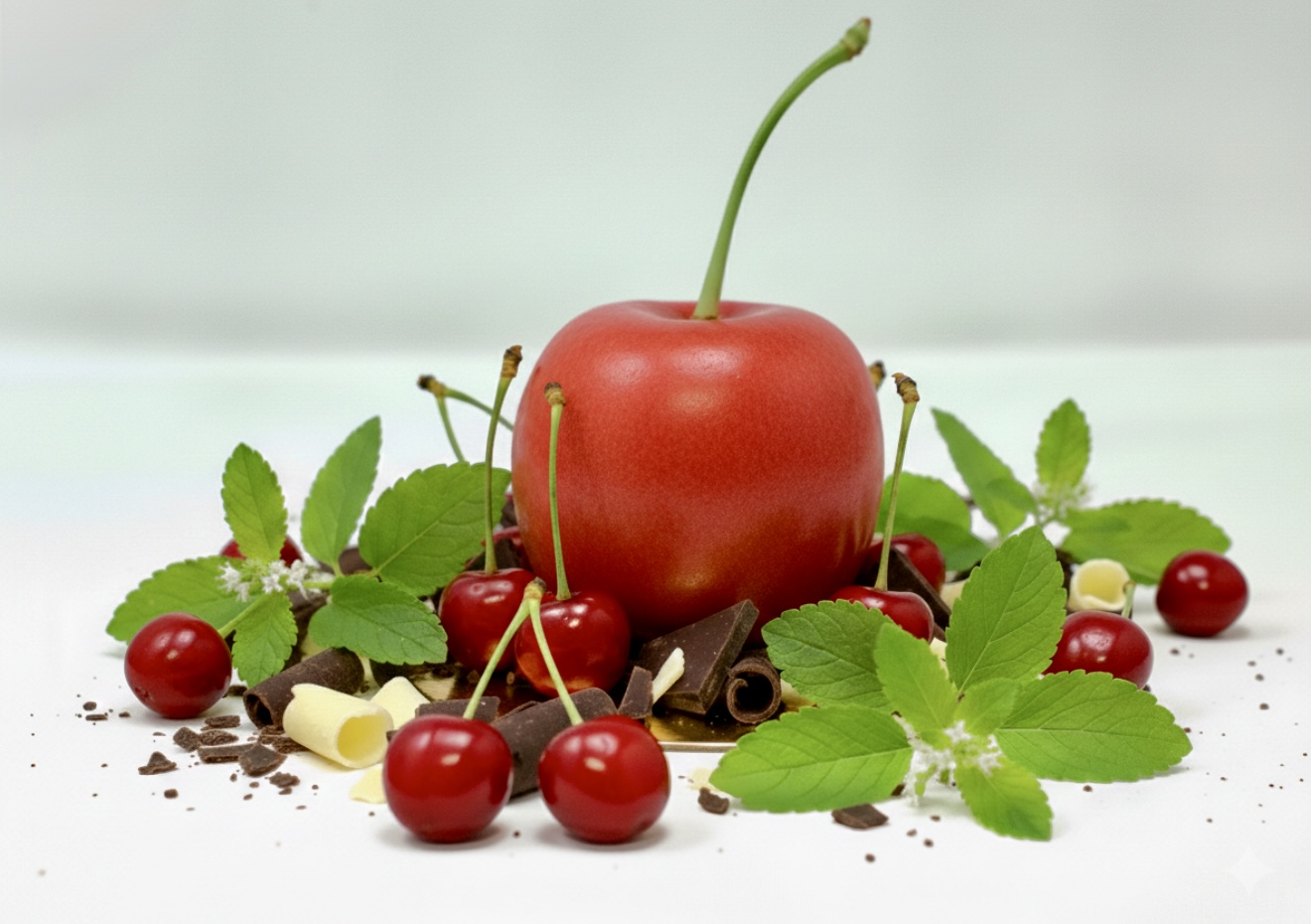 Cherry Mousse with dark chocolate namelaka with a cherry sponge.